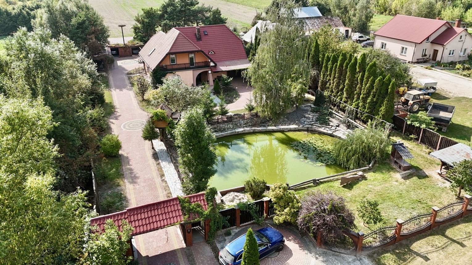 Wyobraź sobie poranek z kubkiem kawy na tarasie, z widokiem na własny staw. Cisza, śpiew ptaków i przestrzeń tylko dla Ciebie.