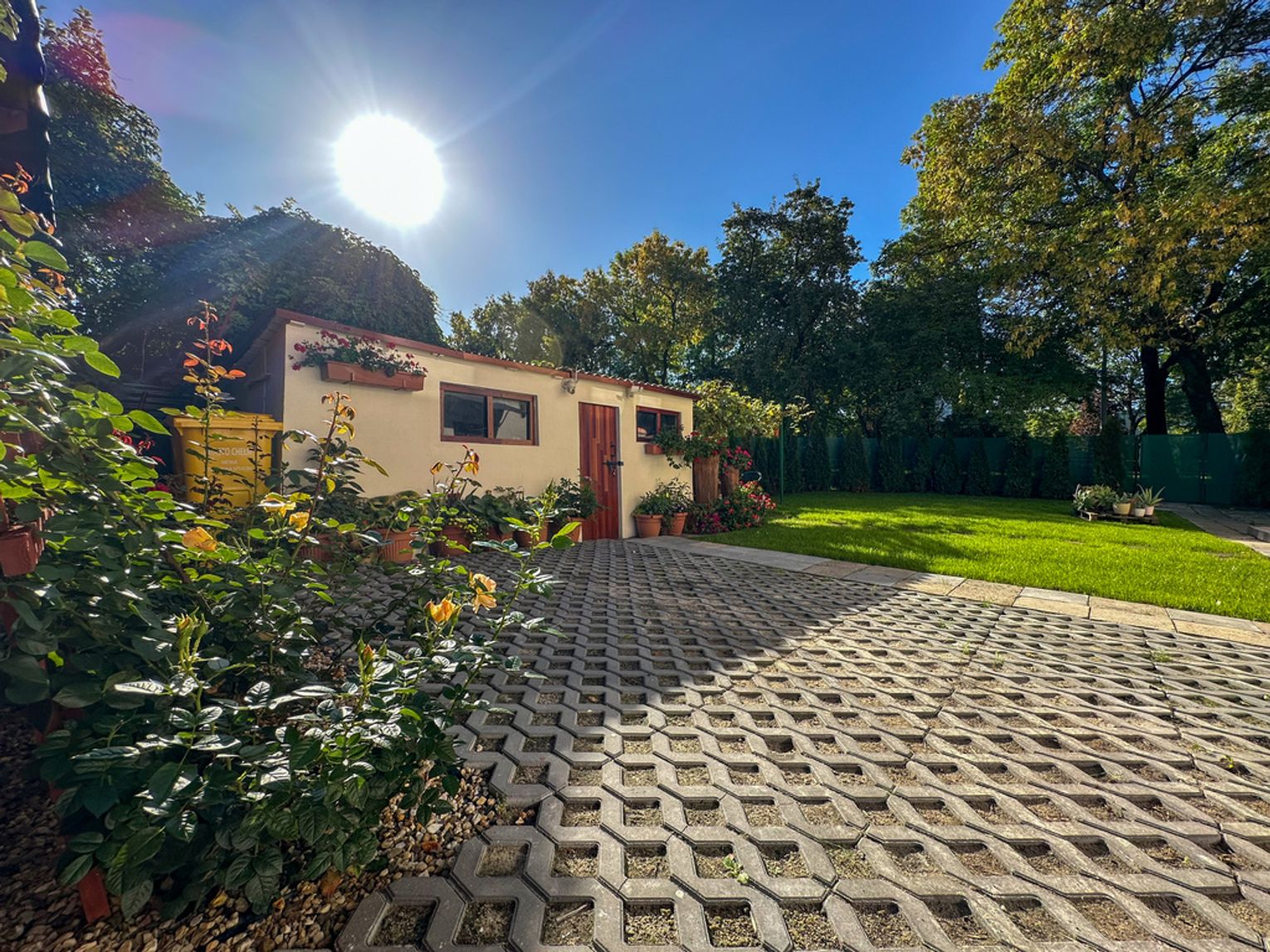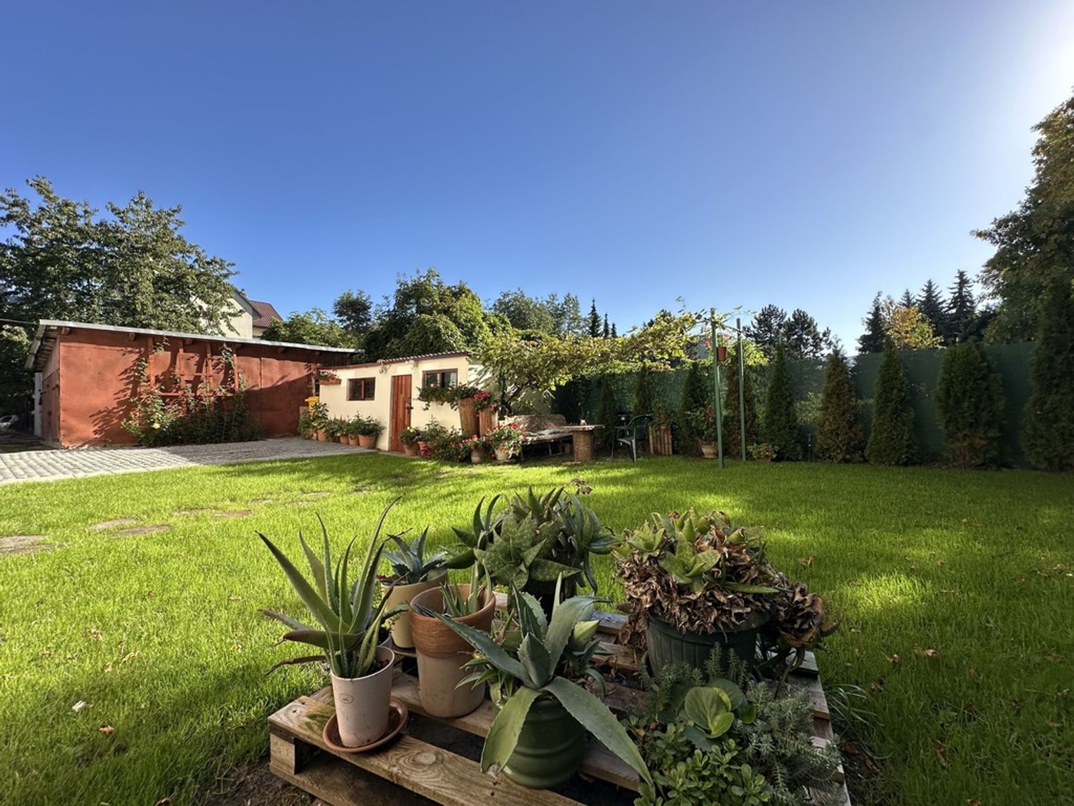 Na działce znajduje się wydzielone miejsce do relaksu, gdzie można wypić kawę, zrobić grilla lub po prostu odpocząć po pracy.