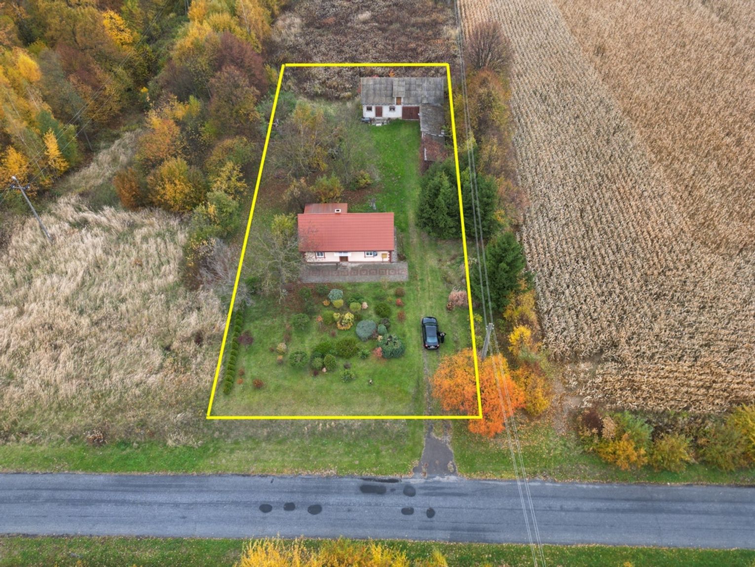 Na działce znajduje się również budynek gospodarczy, który doskonale sprawdzi się jako garaż, warsztat lub składzik.
