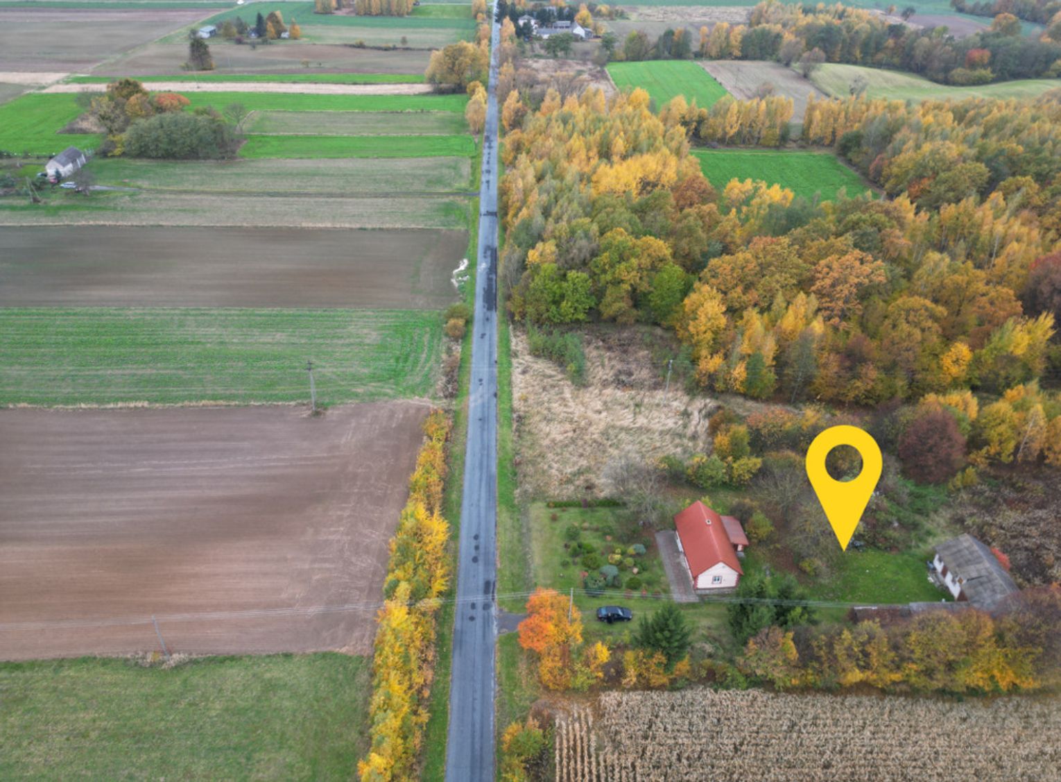 Dojazd do nieruchomości drogą asfaltową.