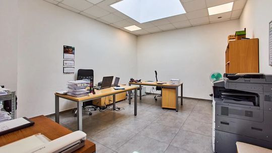 • Zaplecze biurowo socjalne (ok. 196 m²) na które składa się wzorcownia, cztery oddzielne biura, serwerownia, dwa pomieszczenia socjalne, dwa sanitariaty. Całość po generalnym remoncie.