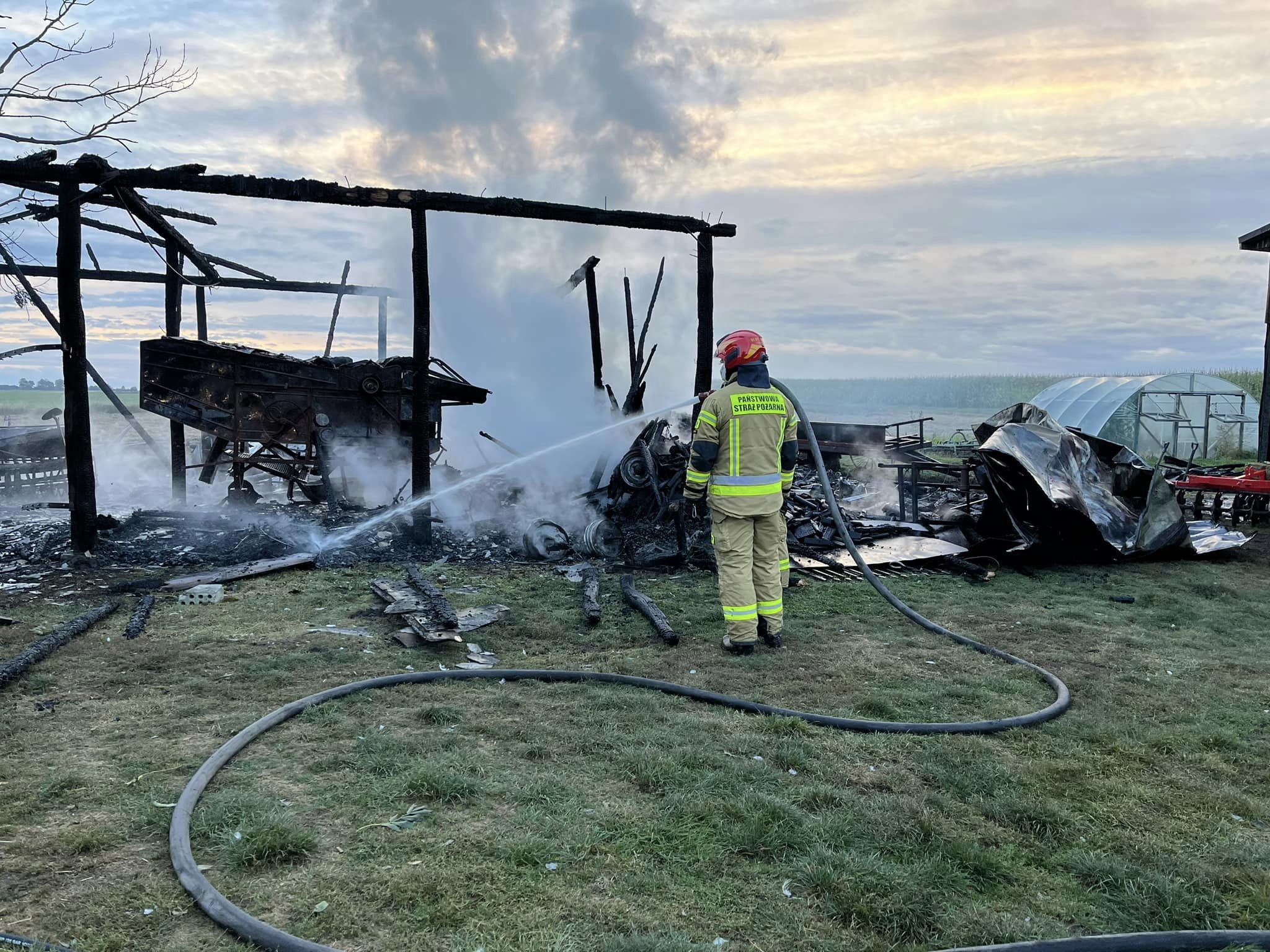 Uratował psa przed płomieniami, sam trafił do szpitala! Pożar strawił stodołę i maszyny [ZDJĘCIA]