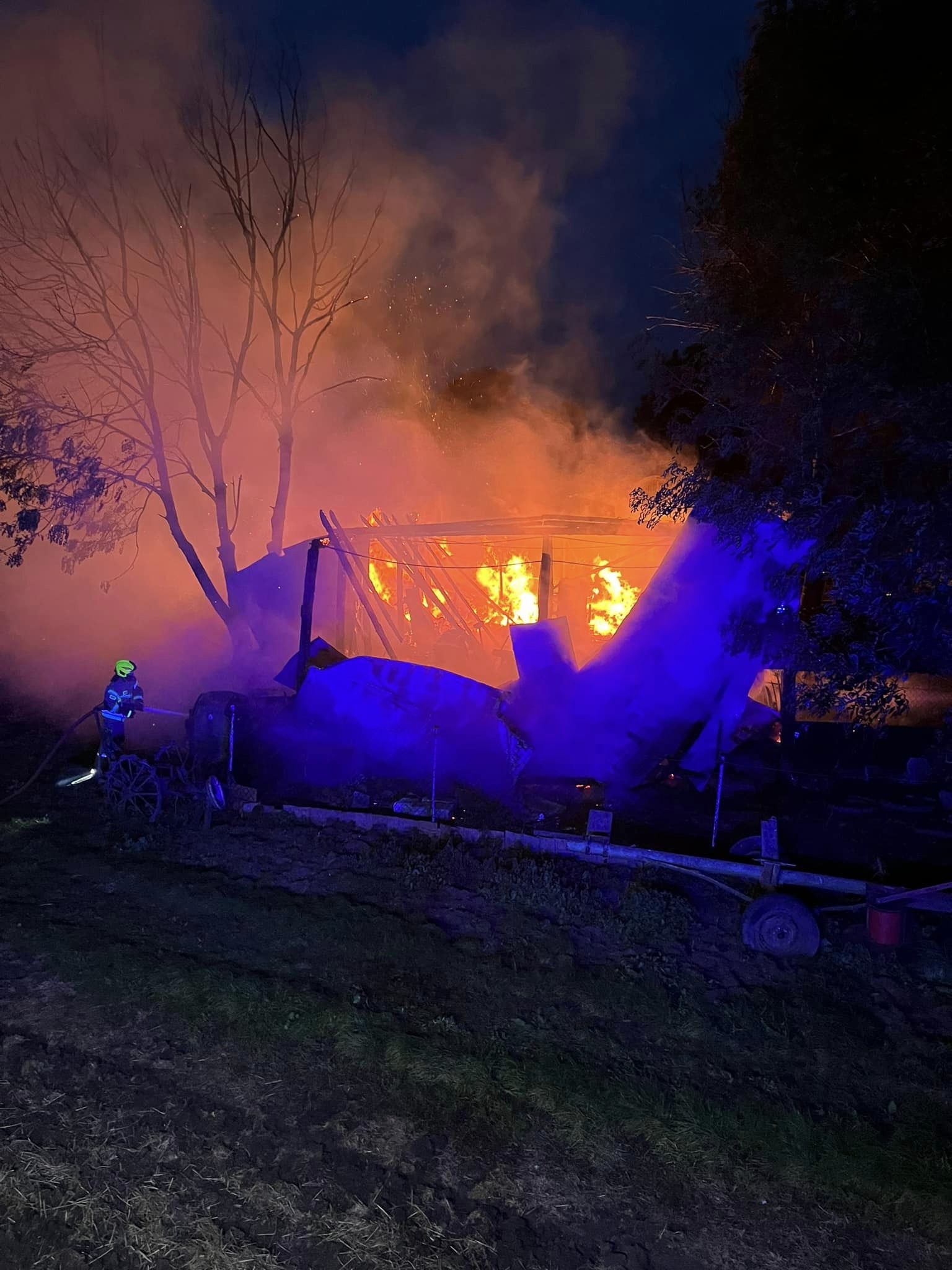 Uratował psa przed płomieniami, sam trafił do szpitala! Pożar strawił stodołę i maszyny [ZDJĘCIA]