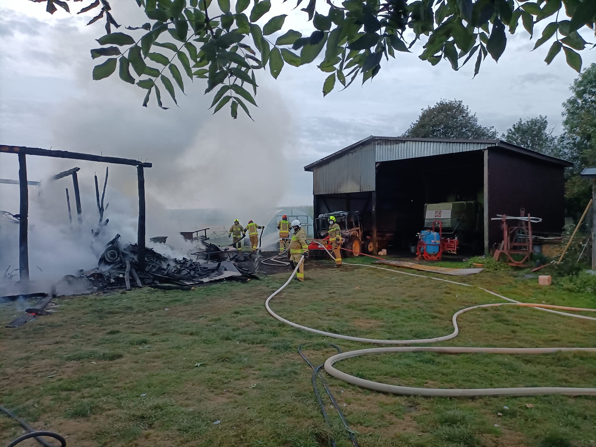 Uratował psa przed płomieniami, sam trafił do szpitala! Pożar strawił stodołę i maszyny [ZDJĘCIA]