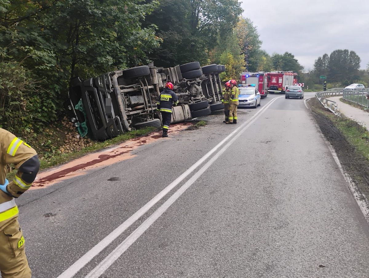 Zdjęcie: Ciężarówka w rowie, kierowca w szpitalu [ZDJĘCIA]