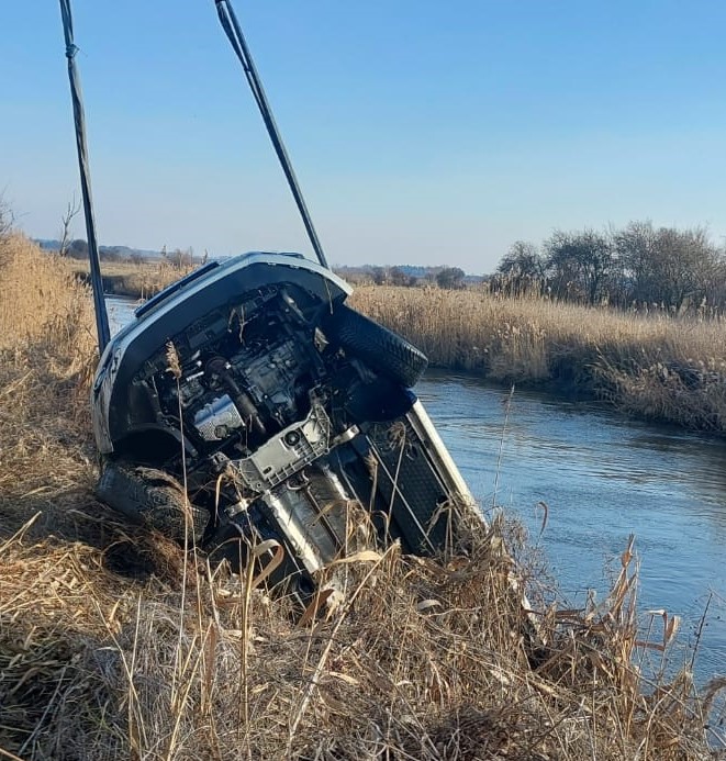Pow. krasnostawski. 47-latek wjechał autem do Wieprza. Chciał sprawdzić poziom wody [GALERIA ZDJĘĆ]