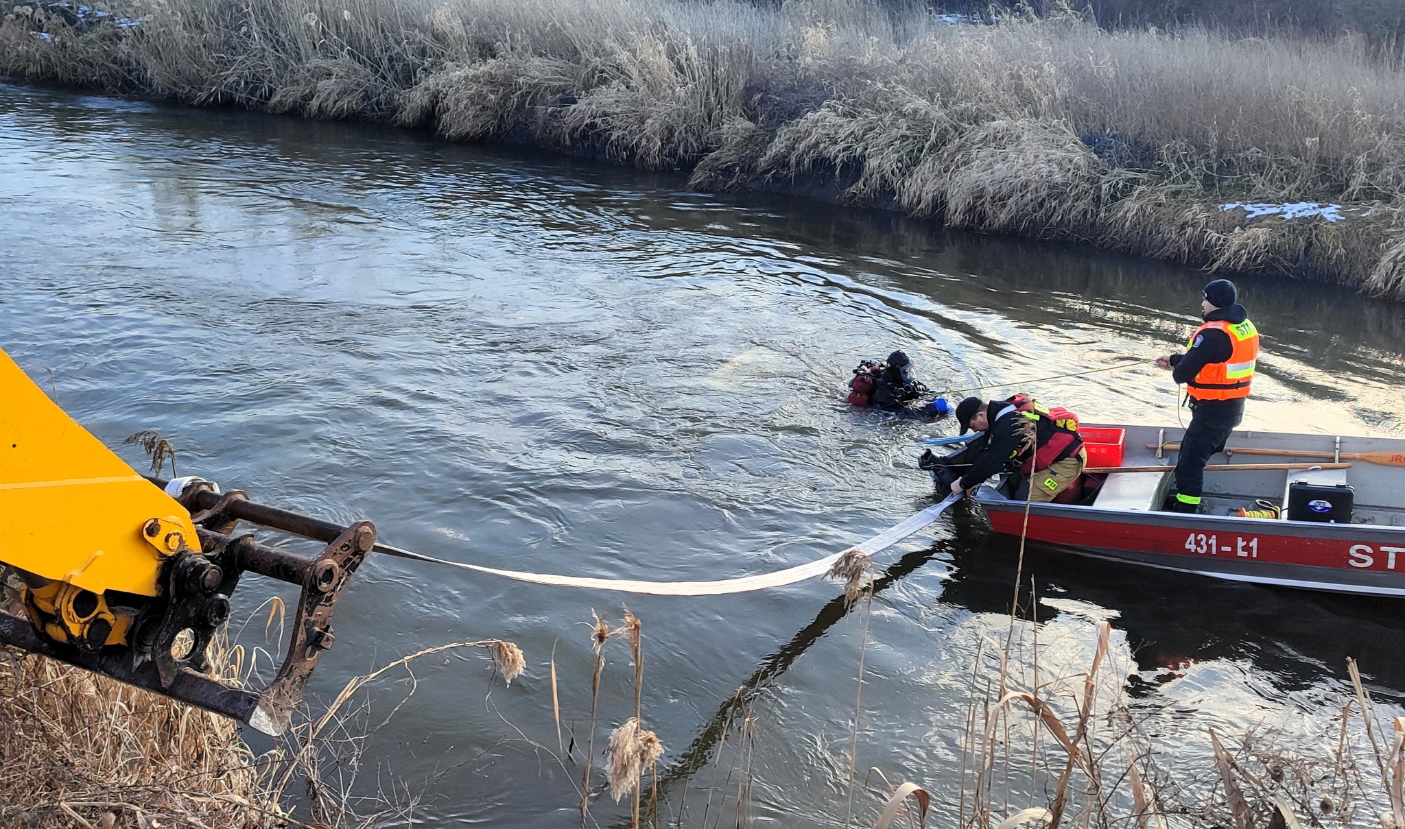 Pow. krasnostawski. 47-latek wjechał autem do Wieprza. Chciał sprawdzić poziom wody [GALERIA ZDJĘĆ]