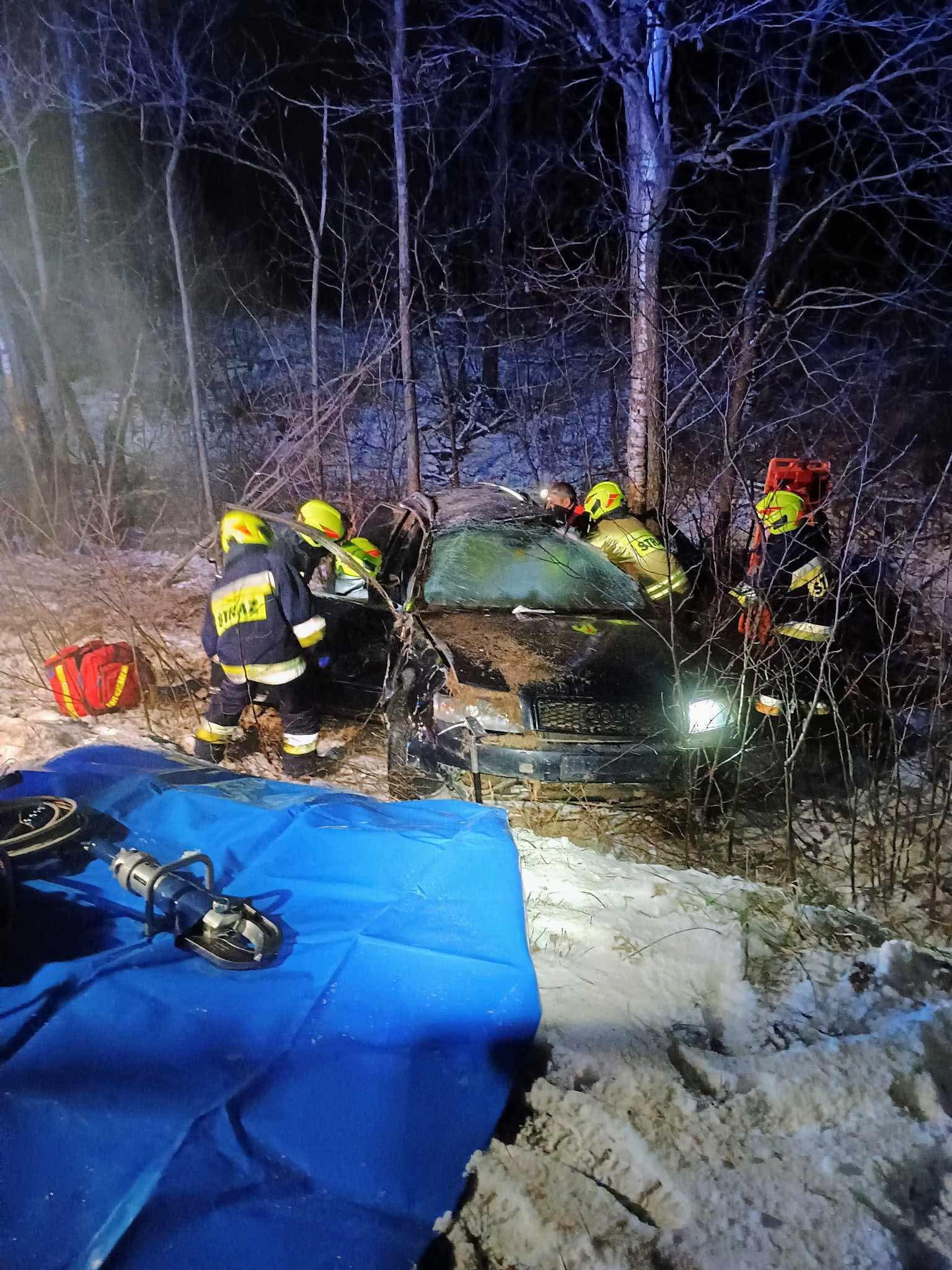Gm. Urszulin. Audi wpadło w poślizg. Wzywano lotnicze pogotowie [ZDJĘCIA]