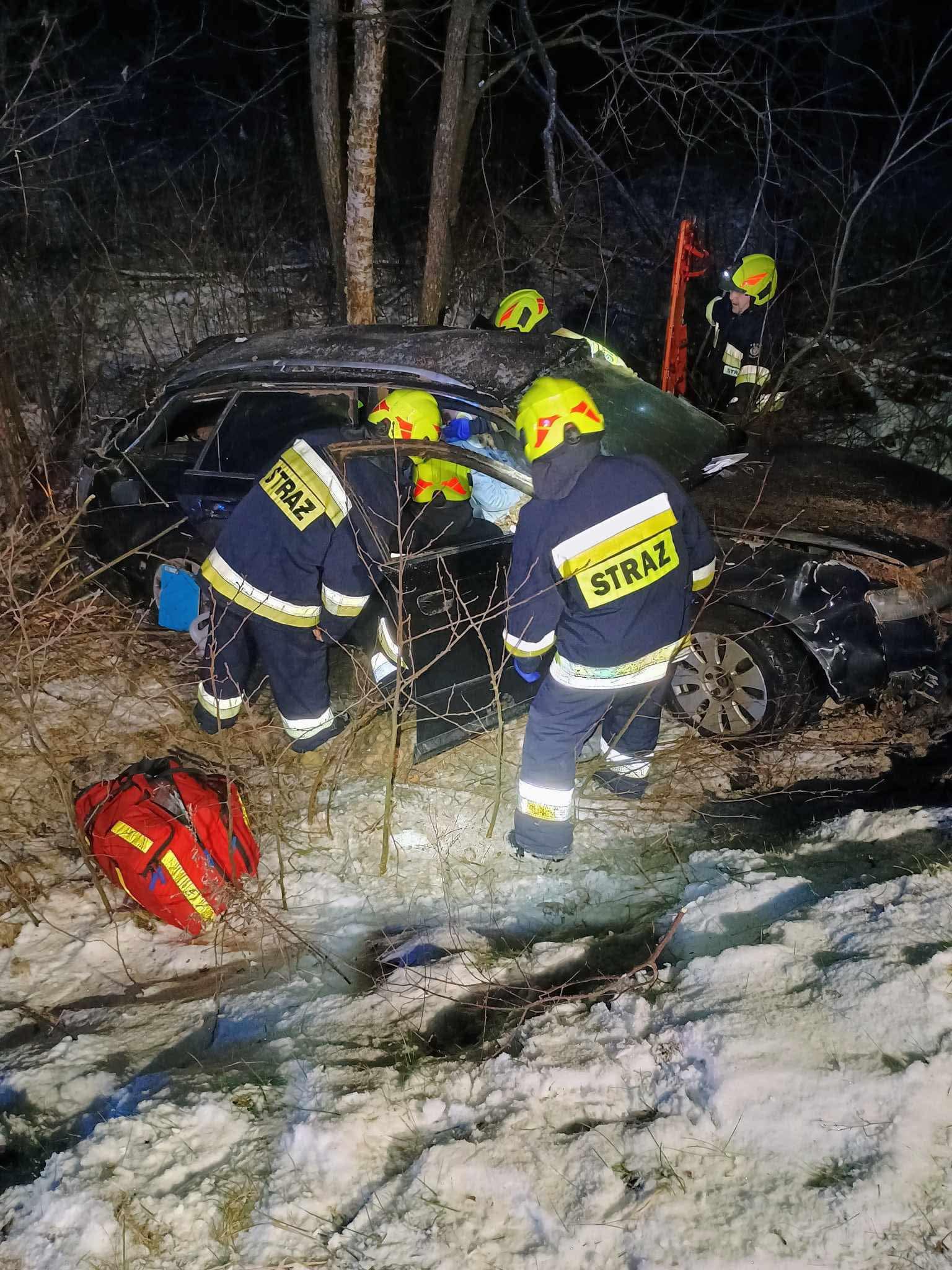 Gm. Urszulin. Audi wpadło w poślizg. Wzywano lotnicze pogotowie [ZDJĘCIA]