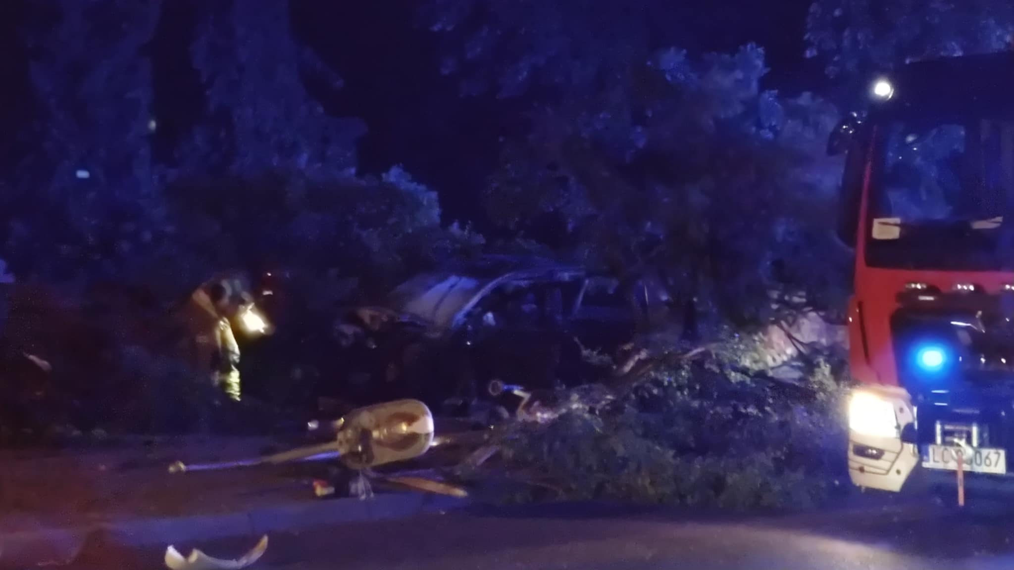 Zdjęcie: Chełm. Uderzył w latarnię, drzewo i cmentarny mur....