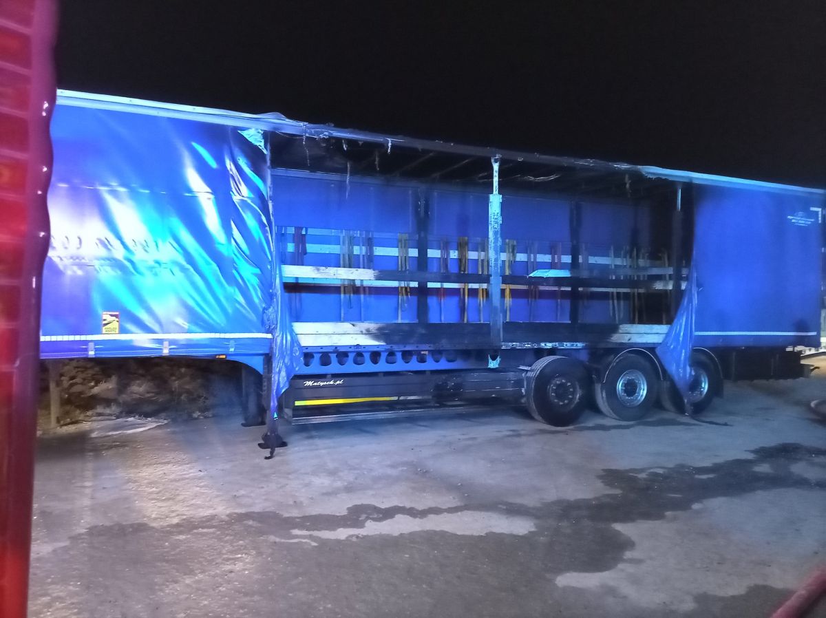 Zdjęcie: Pożar samochodów ciężarowych i kombajnu zbożowego [...