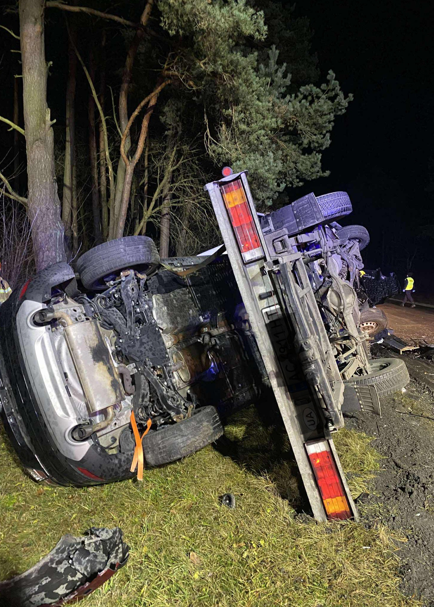 Czołowe zderzenie osobówki z lawetą w Lucie. Trzy osoby zabrane do szpitala [ZDJĘCIA]